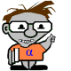 In my early days at LLNL my co-workers called me "alpha geek" cause I am fairly knowledgable about a lot of software development and technical topics. I used to do ontology modeling with Stanford's Protege project and have always enjoyed the protege nerd that is their mascot. I "borrowed" him (I'm hoping he is under some sort of commons license) and twiddled him to match an idea I had to create the alpha geek. Mostly I wanted to make him look a little more like me so I shortened his glasses, put him in a T-shirt and put the greek alpha letter prominently in the middle. I then thought I don't claim to be a great teacher so I removed the pointer stick and replaced it with a thumbs up!